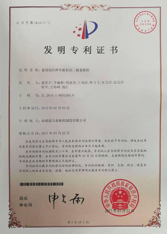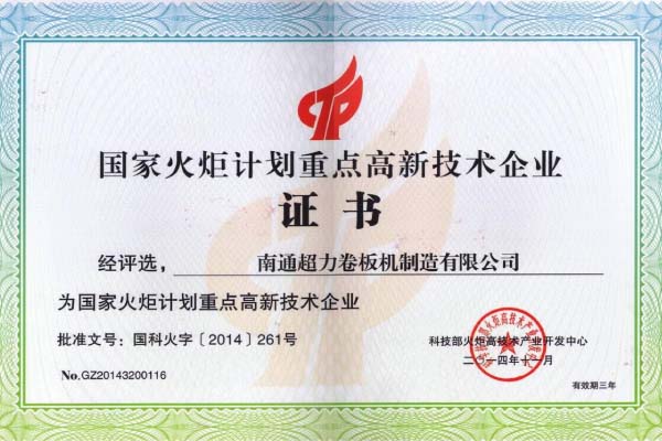 南通超力卷板機制造有限公司,國家高新技術(shù)企業(yè),中國卷板機機床專(zhuān)業(yè)設計、研發(fā)與制造企業(yè)。公司承擔國家火炬計劃項目3項,《JB/T12830-2016/數控二輥卷板機》、《JBCPZT0758-2016/數控矯圓機》行業(yè)標準起草單位,中國鍛壓協(xié)會(huì )會(huì )員,擁有W10、W11和W12等出口產(chǎn)品質(zhì)量許可證。