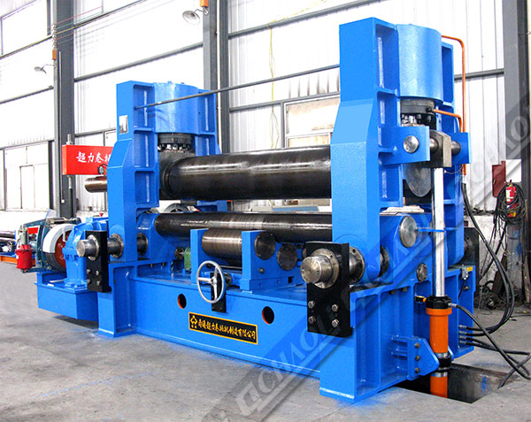 具備板端預彎功能,通過(guò)上輥水平移動(dòng),使上輥相對于下輥呈非對稱(chēng)位置來(lái)實(shí)現板端預彎。